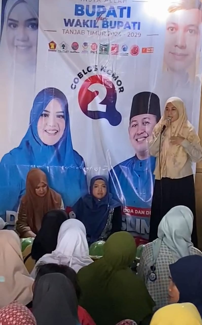Ketua Tim srikandi Pasang Nomor urut dua Hj Dilla Hich – Muslimin Tanja juga seorang Wanita tangguh dan Akademisi Bungatan ,SE,ME yang Terus lakukan penyisiran ke semua kampung dan desa di setiap titik dikabupaten Tanjung Jabung Timur, demi menyampaikan 18 program ungulan Paslon Dilla – Muslimin, agar tersampikan ke semua lapisan Masyrakat sampai ketingkat Bawah karana Bungatan berkeyakinan bahwa calon Bupati yang sangat punya potensi dan wawasan hanya Paslon Dilla – Muslimin. Seperti yang dilakukan dikecamatan Sadu pada 21/11/2024.